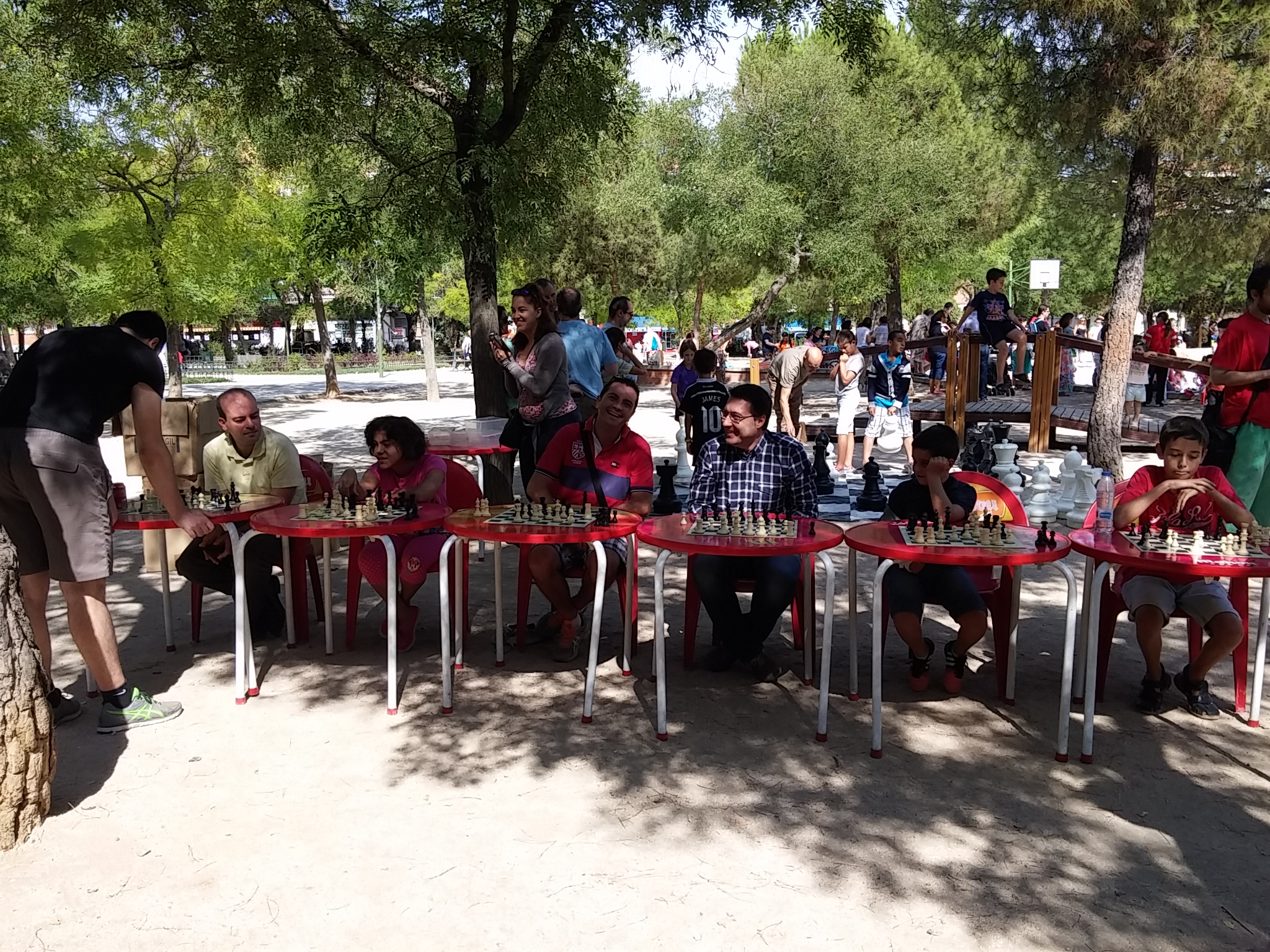 Exitazo de las simultáneas y del ajedrez gigante. Nuestro compañero Miguel Angel (AjedrezDiferente) estuvo más de 2 horas combatiendo con todo aquel que se le pusiera por delante. Mientras tanto en el ajedrez gigante, partidas por equipos.